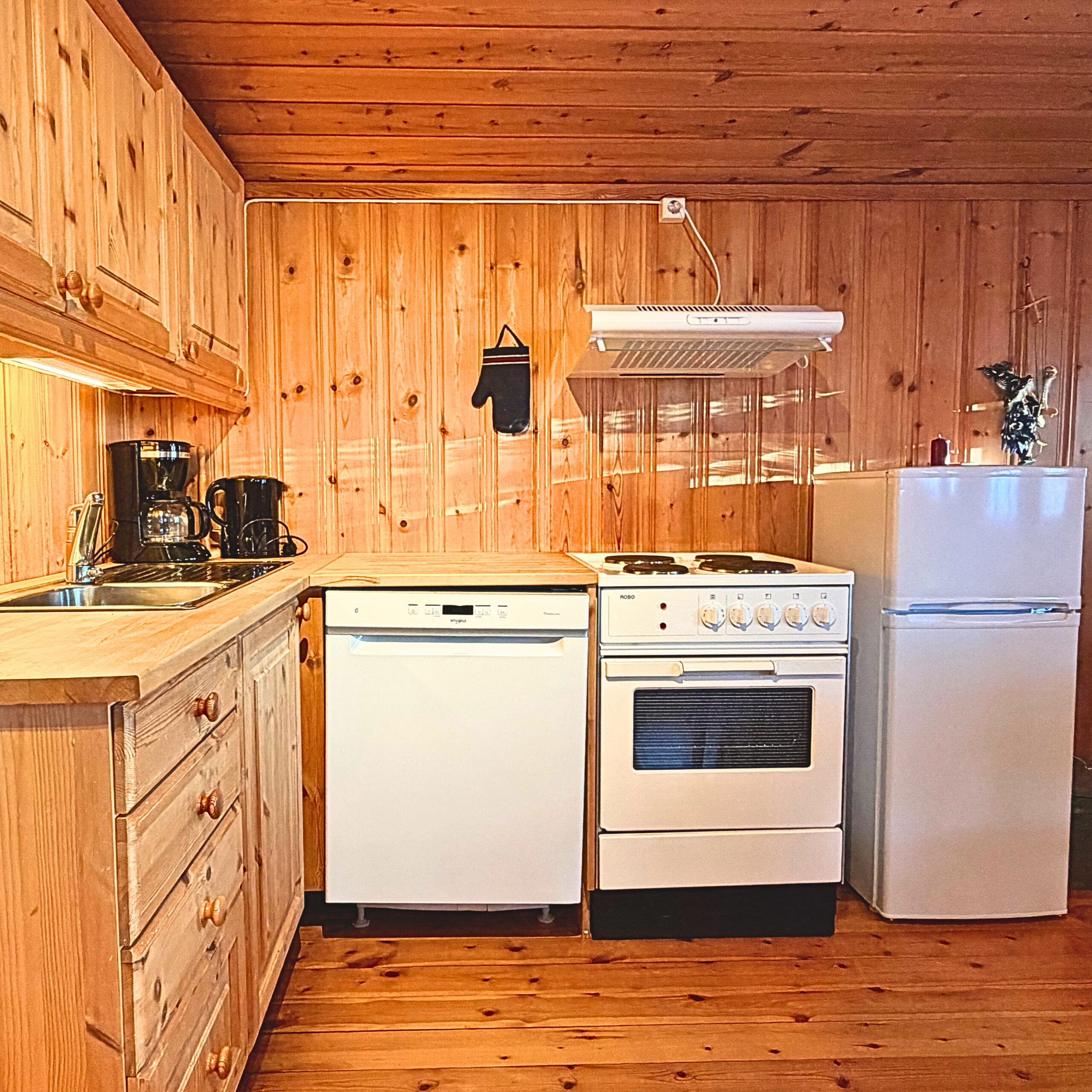 | Kitchen with oven, dishwasher, refrigerator with freezer, dishwasher, coffee machine and electric kettle | |