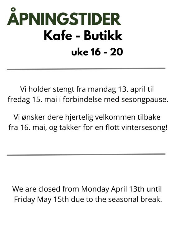 Sesongen fra 15. may – 1. november (vinteren på forespørsel)